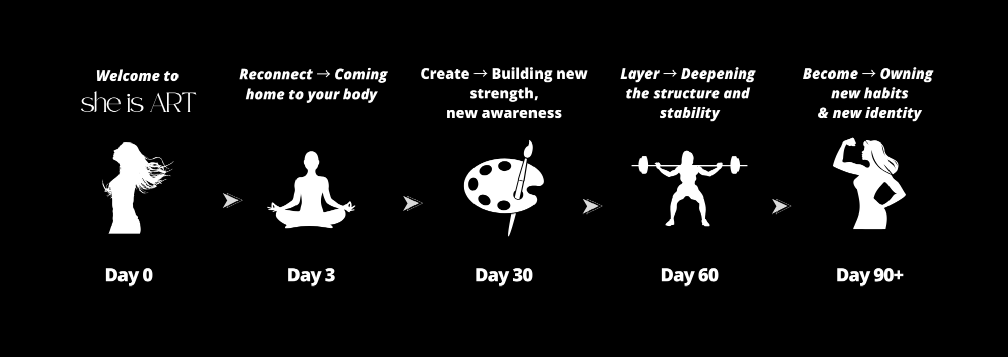"I didn't realize how much l'd lost touch with my body until l Started She Is Art. I used to think movement was just about how I looked. Now, it's about how I feel strong, confident, and more connected than ever. This program didn't just change my body, it changed my mindset. I've stopped chasing perfection and started honoring where I am. For the first time in years, I feel free in my own skin."